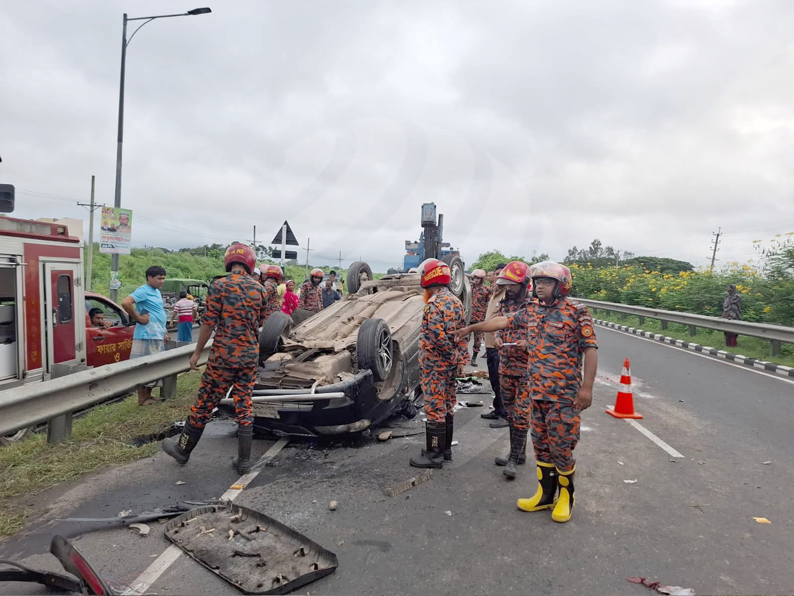 তাৎক্ষণিকভাবে হতাহতদের নাম পরিচয় জানা যায়নি। ফায়ার সার্ভিস ও হাইওয়ে পুলিশের প্রাথমিক ধারণা, মাত্রাতিরিক্ত গতি বা অজ্ঞাত কোনো গাড়ির ধাক্কায় এ দুর্ঘটনা ঘটতে পারে।