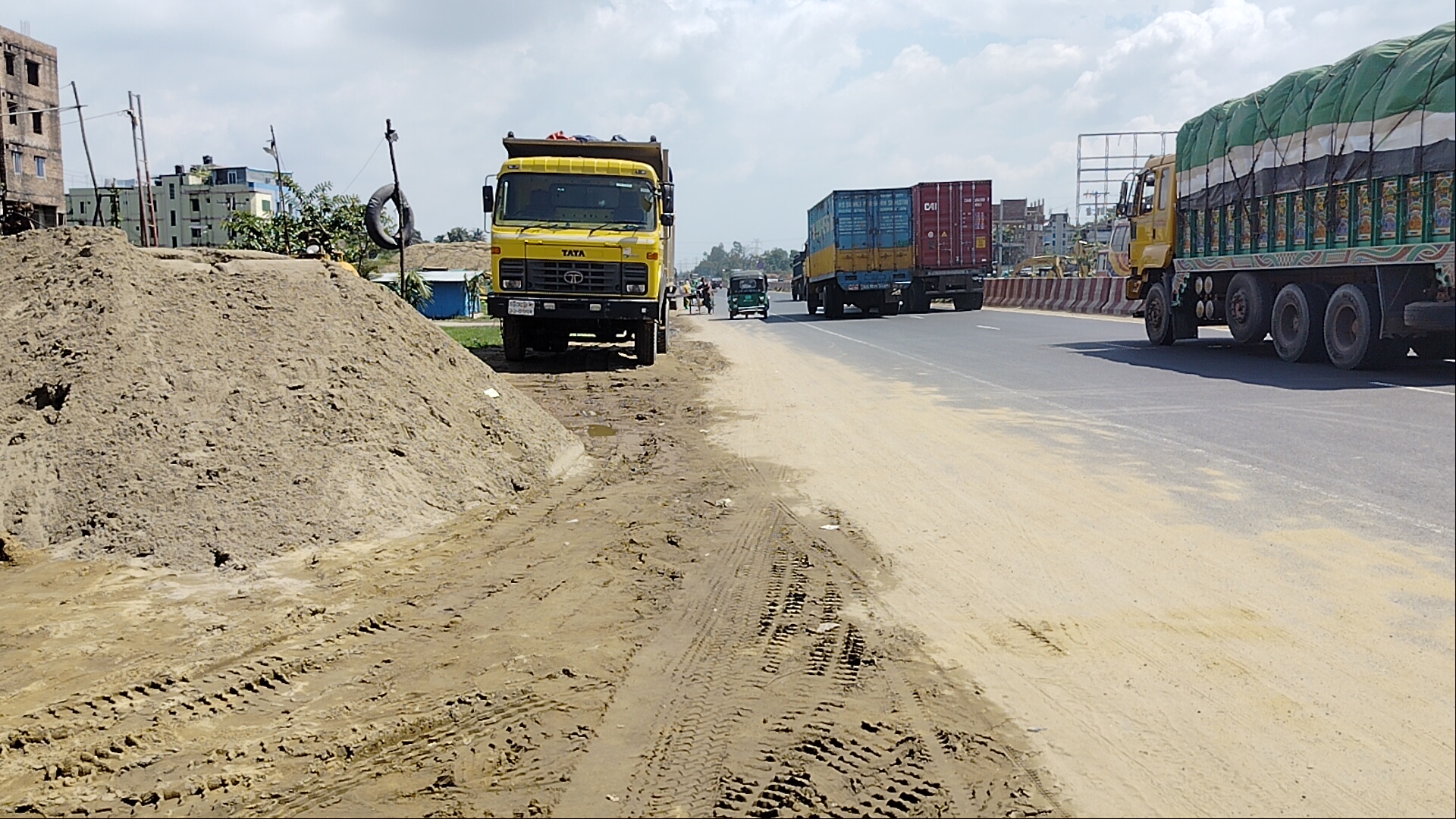 মহাসড়কের পাশে পাহাড়সম বালু