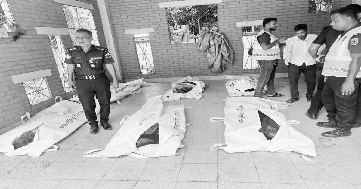 দুপুরে ধর্মদহ গ্রামে গিয়ে দেখা যায়, বাড়ির সামনে শোকাহত মানুষের ভিড়। কান্নায় ভারী হয়ে উঠেছে পরিবেশ। নিহতদের দাফন প্রবাসী দুই সন্তান আসার পর সম্পন্ন হবে বলে জানিয়েছেন স্বজনরা।